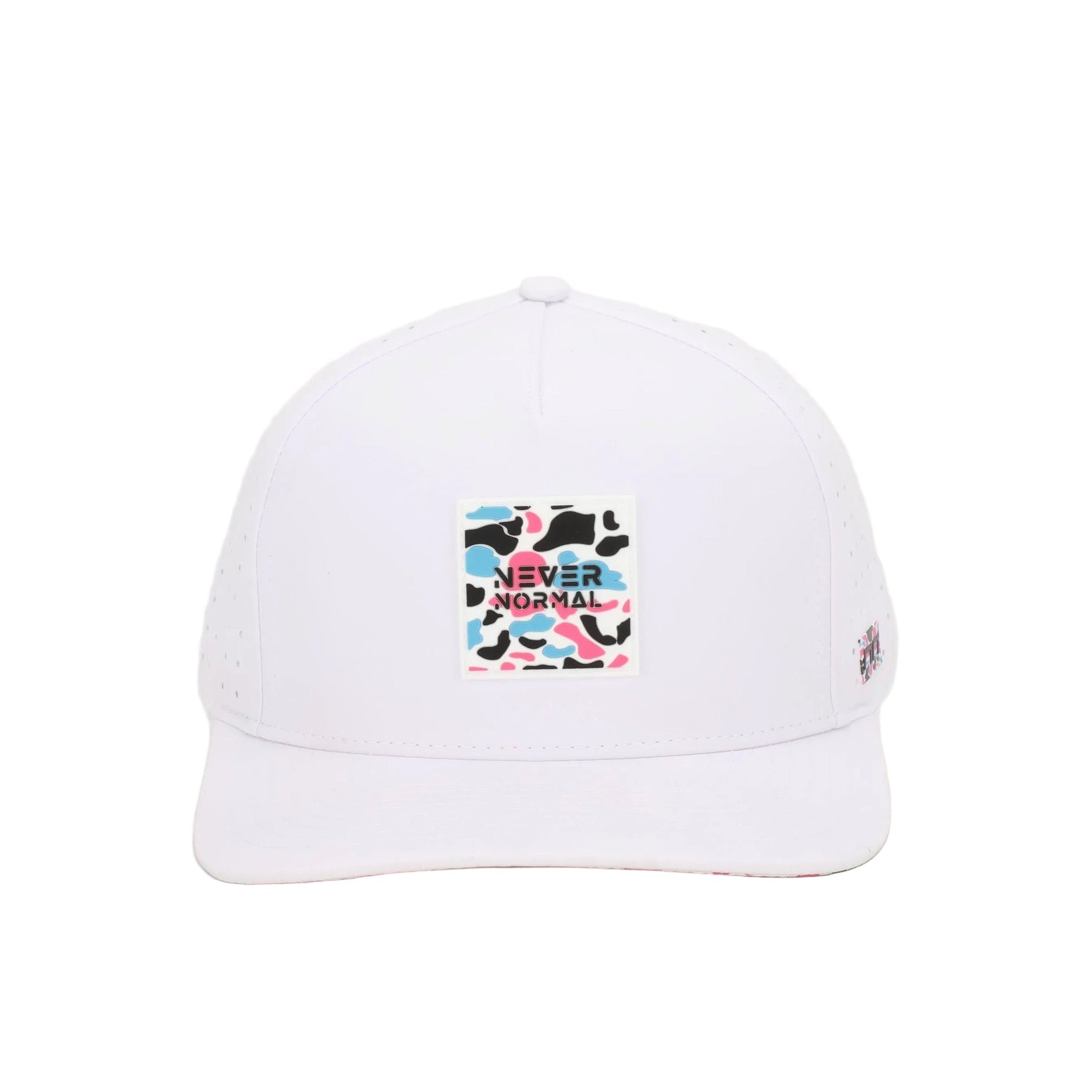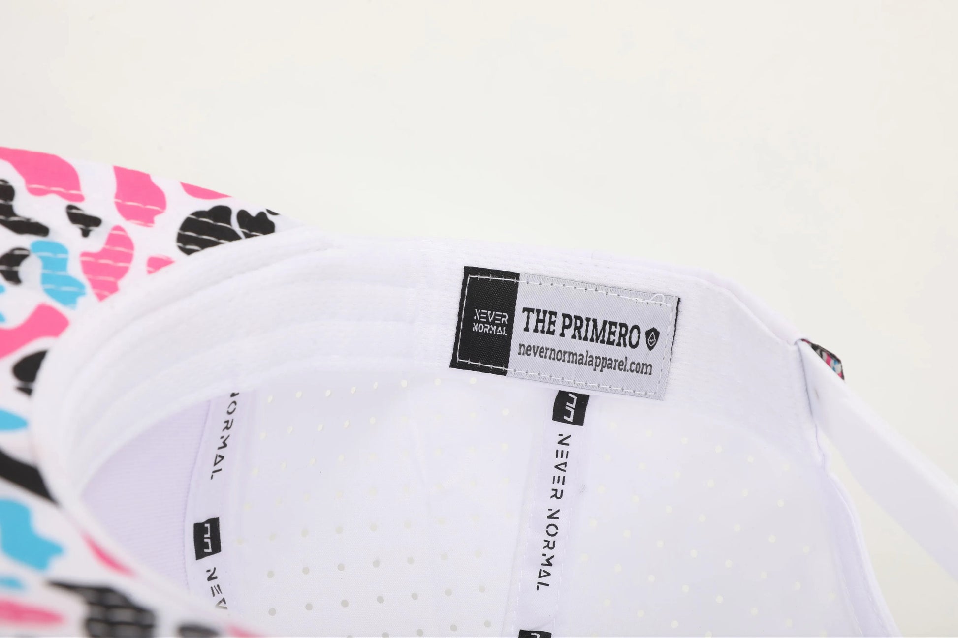 The Primero - Static is a performance snapback cap with a vibrant camo finish. It uses lightweight, durable materials and offers a secure fit for daily use.